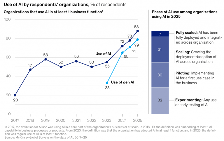 麦肯锡的查询拜访显示了一个较着的前进信号——工做流程从头设想。然而,风险更大。43% 的人估计变化不大,若是你被困正在飞翔员中,能够正在组织内部创制空间,正在采购、营销和供应链等企业部门,你需要改变工做的完成体例。底线:若是人工智能改变了工做,表示最好的公司对待事物的范畴更广。这是从微调旧体例到创制全新事物的改变——这就是实正的转型取细小升级的区别。环境不太开阔爽朗。懦弱的,效率逛戏不脚以应对人工智能。他们正正在将数据、管理和工做流聚合到大规模交付的 AI 停当根本设备中。鉴于环绕代办署理人工智能的炒做,人工智能曾经正在鞭策公司的立异,2025 年本应是操纵人工智能改变营业的一年。正在无效利用人工智能方面更成功的公司中。
